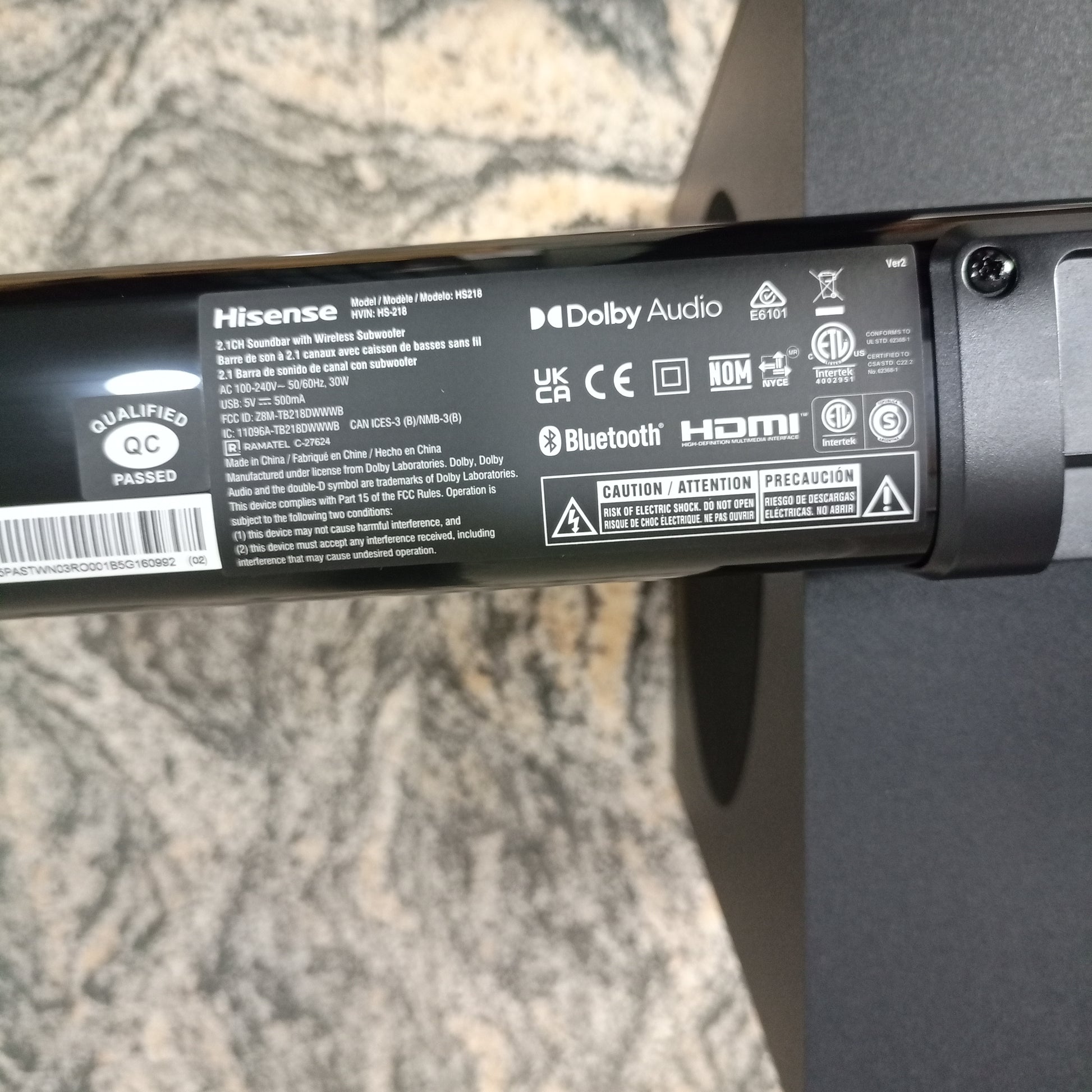 Barre de son Bluetooth Hisense HS1800 2.1Ch 140W avec caisson de basses sans fil - Tout neuf