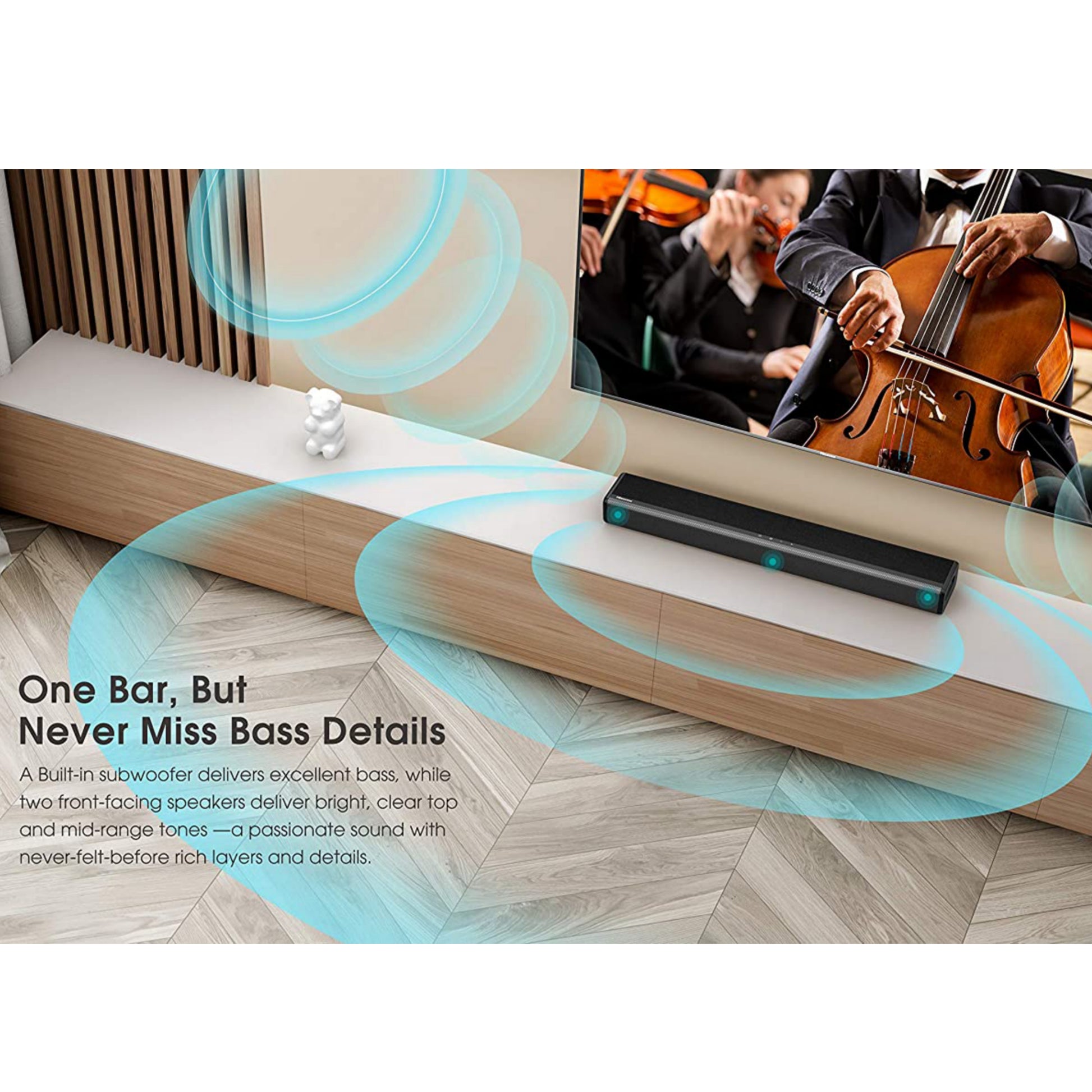 Connectez votre appareil à Bluetooth® pour diffuser de la musique ou connectez-le avec des câbles optiques, auxiliaires et RCA pour une configuration simple et sans tracas. Nous avons également fourni un kit de montage mural pour que vous puissiez gagner de la place et l'installer comme vous le souhaitez.