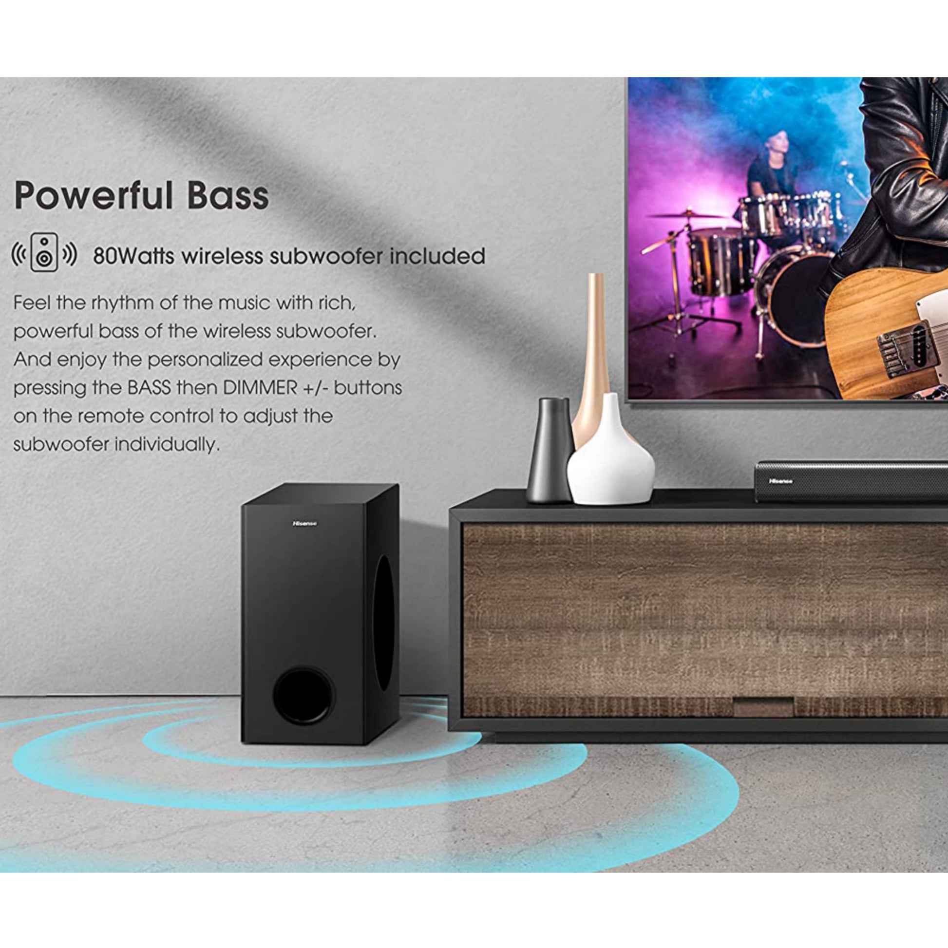 Barre de son Bluetooth Hisense AX2107G 2.1Ch 300W avec caisson de basses sans fil - Tout neuf