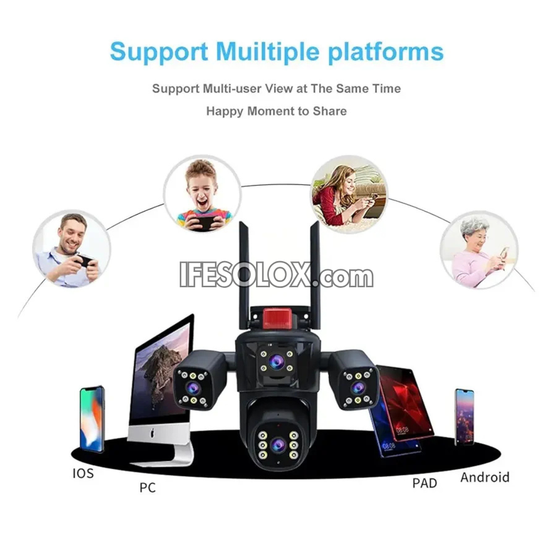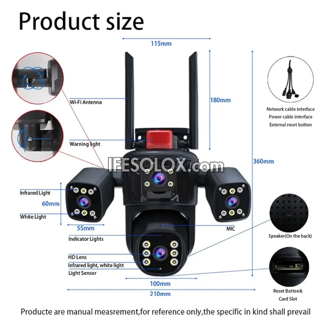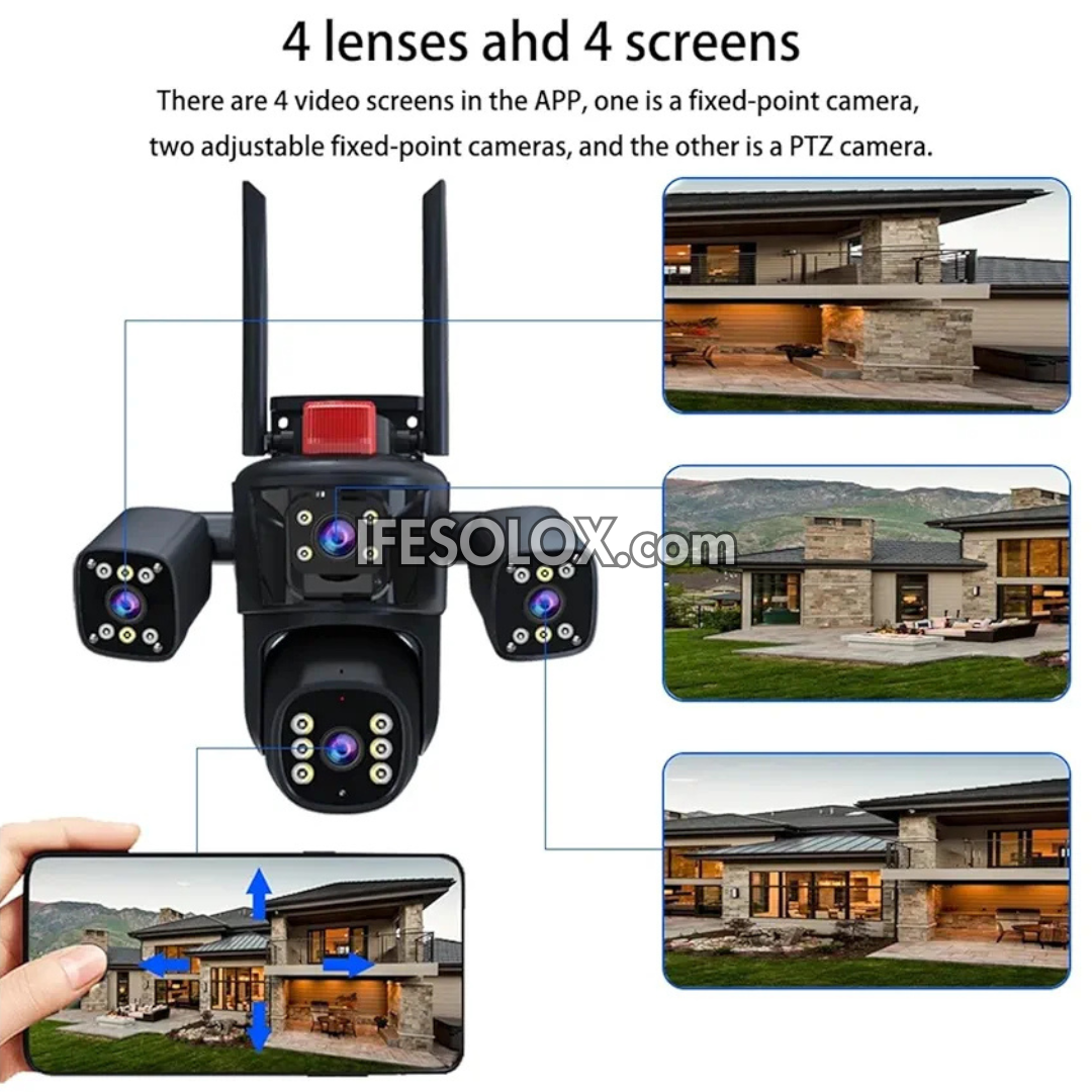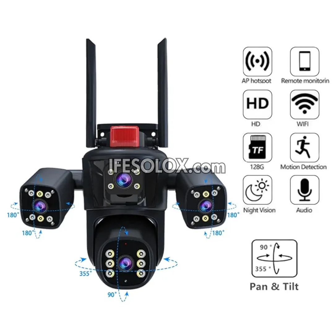 SLX 5MP Four Lens Solar IP Camera (3 Bullet Camera and 1 PTZ Camera) with WiFi, 4G SIM, Night Vision, 2-way Audio and Motion Detection - Brand New