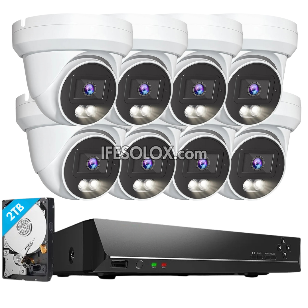 SLX 5MP PoE Security IP CCTV System Bundle with 8 Night Vision Turret Cameras, 8Ch NVR, 2TB HDD, CAT6 cable and Connectors - Brand New
