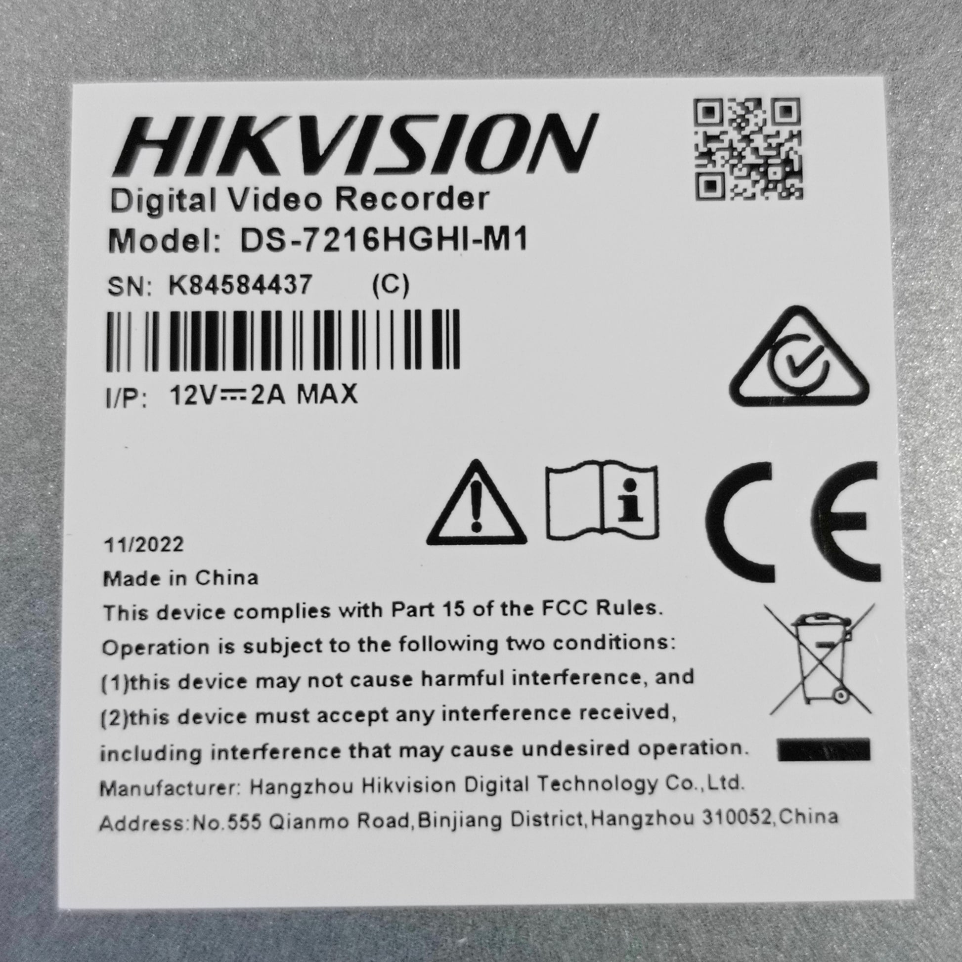 HIKVISION 16-Channel 2-Way Audio 7200-Series 5MP 6-in-1 High Definition DVR (Supports IP, XVI, AHD, CVI, CVBS, TVI cameras) - Brand New
