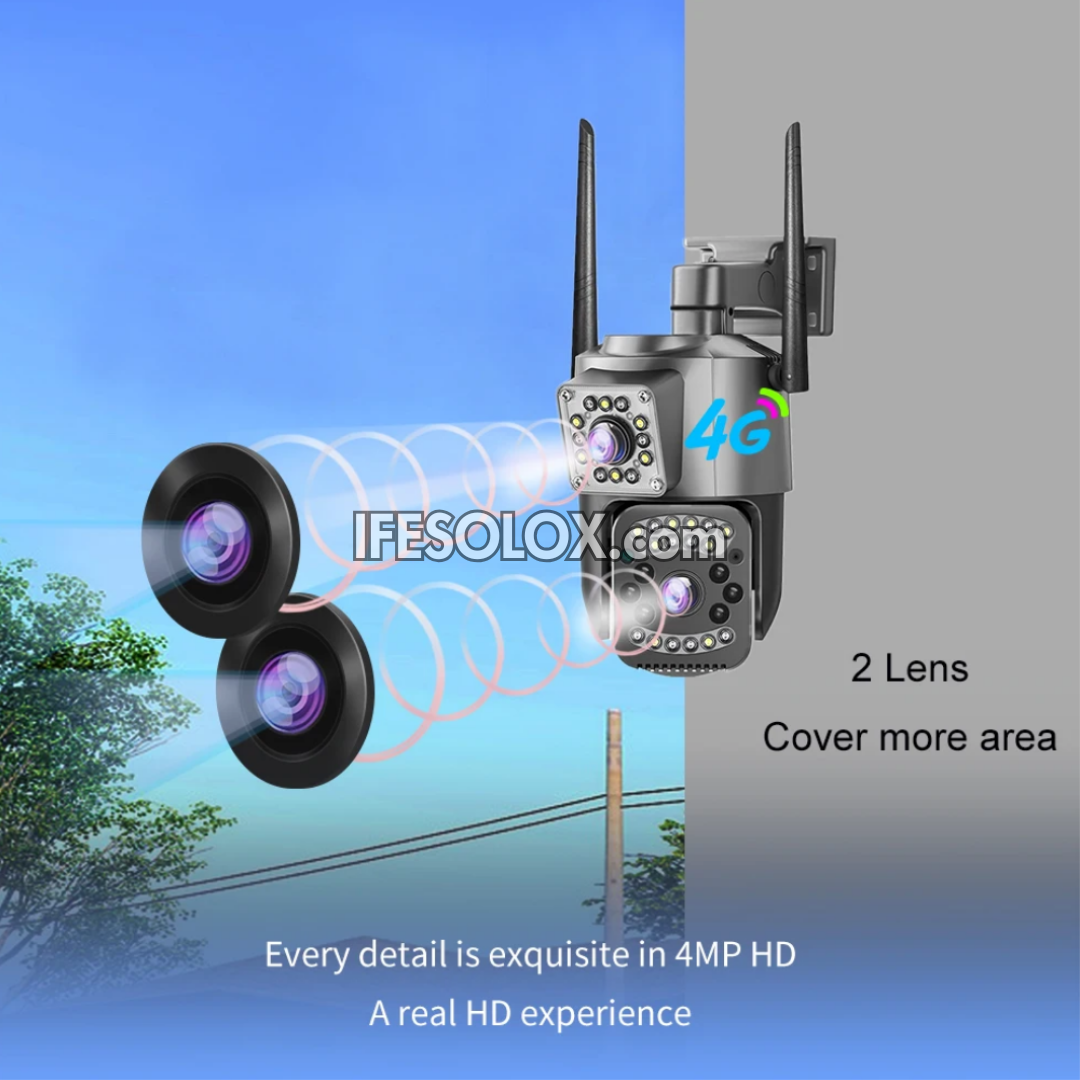 SLX 5MP Dual Lens Solar IP Camera (1 Bullet Camera and 1 PTZ Camera) with WiFi, 4G SIM, Night Vision, 2-way Audio and Motion Detection - Brand New